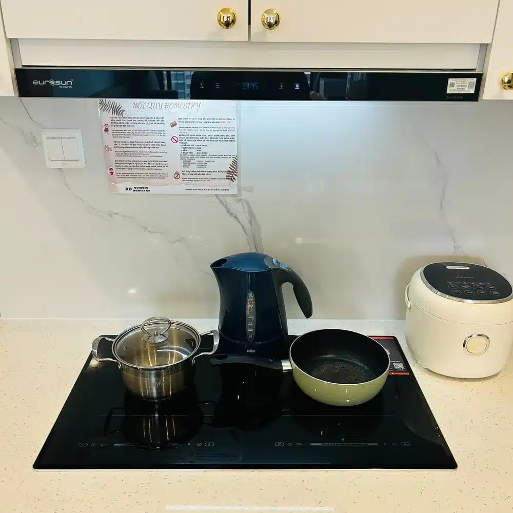 Địa điểm: Tầng 20, Tòa nhà S219, Vinhomes Ocean Park, Quận Gia Lâm, Thành phố Hà Nội Căn hộ 55 m² có 2 phòng ngủ, 1 phòng khách và 1 phòng tắm. Nó chứa đầy ánh sáng tự nhiên và được trang bị đầy đủ các tiện nghi hiện đại. Khoảng cách: Cách VinUniversity, TechnoPark Tower 500m Cách Hồ Nước ngọt Ngọc Trai 5 phút đi bộ 2 phút đến trạm xe buýt gần nhất Cách Khu phố cổ – trung tâm thành phố Hà Nội 15 km (20 phút đi xe hơi) Cách sân bay Nội Bài 35 km (30 phút đi xe hơi) Chỗ ở 1. Được trang bị đầy đủ các tiện nghi hiện đại. 2. An toàn tối đa: Hệ thống phòng cháy chữa cháy tiêu chuẩn, cửa chống cháy, máy báo khói, vòi phun nước tự động. 3. Internet tốc độ cao được cung cấp miễn phí. 4. Chúng tôi cũng cung cấp dịch vụ dọn phòng miễn phí hàng ngày để giữ cho thời gian lưu trú của bạn thoải mái và không phải lo lắng. 5. Tiện nghi tiện lợi ở tầng 1: Cửa hàng tiện lợi, nhà thuốc, ngân hàng, quán cà phê, spa, v.v. Thuê xe máy: 100.000 đồng/ngày. 6. Phòng khách – Hệ thống điều hòa hai chiều – Tivi thông minh 43 inch + Netflix miễn phí – Bàn làm việc – Ghế sofa và bàn cà phê – Rèm cửa – Quạt trần – Máy giặt 7. Phòng ngủ chính – Hệ thống điều hòa hai chiều – Giường cỡ Queen (1,8m x 2m): nệm lò xo 20cm, chăn bông, ga trải giường, gối, topper – Tủ quần áo có móc treo – Rèm cửa – Cửa sổ với tầm nhìn mở 8. Phòng ngủ nhỏ – Hệ thống điều hòa hai chiều – Giường (1,6m x 2m): Nệm lò xo 20cm, chăn bông, ga trải giường, gối, topper – Tủ quần áo có móc treo – Bàn làm việc – Rèm cửa 9. Bếp – Bếp đầy đủ tiện nghi: Bếp từ, máy hút mùi, chảo rán, nồi, đĩa, đũa, v.v. (không bao gồm gia vị) – Tủ lạnh hai cửa rộng rãi – Bàn ăn có ghế 10. Phòng tắm – Phòng tắm riêng có vòi sen. Nước nóng có sẵn 24/7. – Khăn tắm, máy sấy tóc – Dầu gội đầu, dầu xả, sữa tắm Tiện nghi khách có quyền sử dụng Thư giãn tại Hồ Nước ngọt Ngọc Trai (cách tòa nhà 5 phút đi bộ) – MIỄN PHÍ Bến xe buýt chỉ cách tòa nhà 2 phút đi bộ Bãi đỗ xe máy trong tầng hầm của tòa nhà: 30.000 VND/đêm 2.000 VND/lượt MIỄN PHÍ cho thời gian ở trên 1 tháng (có thông báo trước 1 tuần) Bãi đỗ xe: 10.000 VND/giờ (trong tầng hầm của tòa nhà) Những điều cần lưu ý khác – Checkin tự động, linh hoạt ( tuỳ tình trạng phòng ) – Hỗ trợ 24/7 – Trước khi check in, Quý khách vui lòng xuất trình giấy tờ hợp pháp để làm thủ tục nhận phòng ( cccd, hộ chiếu, visa….) ————————— We offer flexible self check-in (depending on room availability) and 24/7 support for all guests. Before check-in, please kindly present valid identification documents (ID card, passport, visa, etc.) for registration.