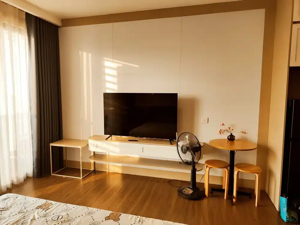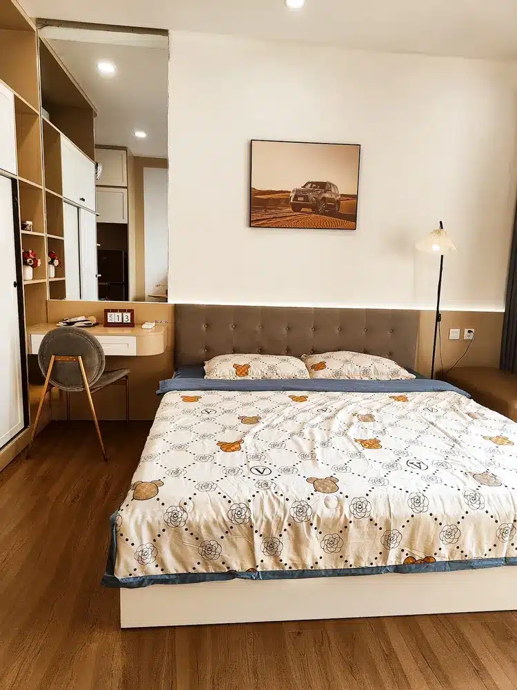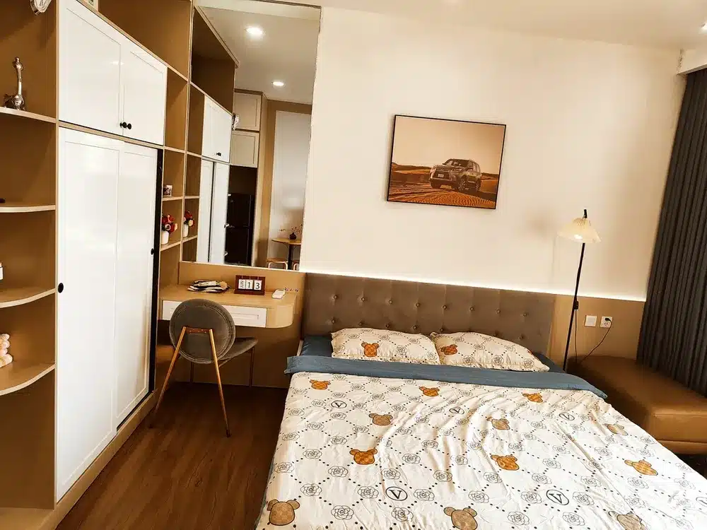 🔸Căn hộ studio với các tiện ích có sẵn như sau: * Bể bơi vô cực. * Khu vui chơi trẻ em. * Nhà hàng ăn uống, cafe, siêu thị,… dưới sảnh căn hộ * Cách công viên Hồ Thiên Nga 10′ đi xe (vui chơi, cắm trại, bếp nướng, thả diều, đạp xe, chèo thuyền Kayak, …) *Cách 10 ‘ đi xe sang Chợ Quê cuối tuần * Cách Bistro Garden 2’ đi bộ. * Smart TV, Wifi, máy giặt, điều hoà, quạt. * Dụng cụ nấu ăn và gia vị cơ bản * Đồ vệ sinh cá nhân (khăn tắm, bàn chải, dầu gội, sữa tắm,..) * Miễn phí trà, cafe.
